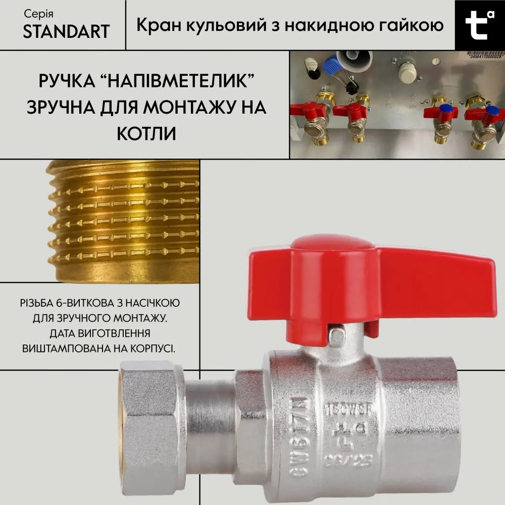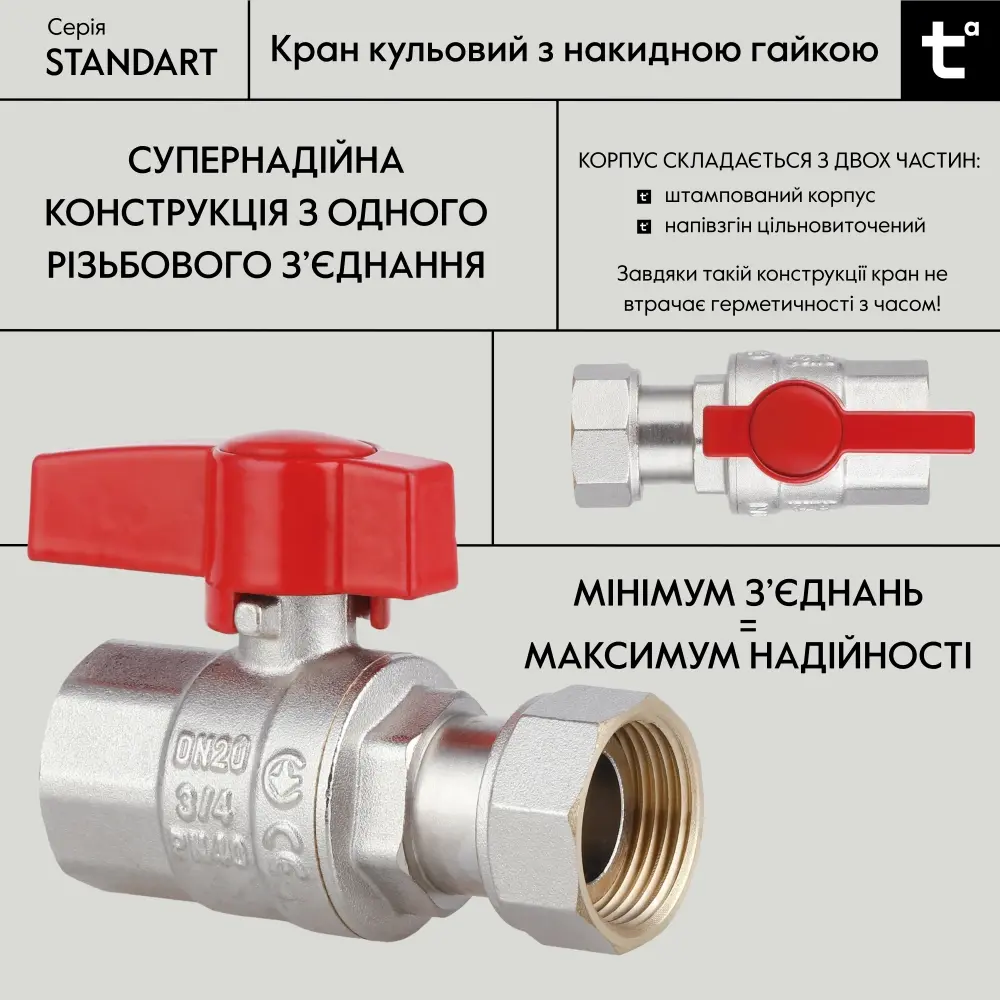Шаровой кран с накидной гайкой Thermo Alliance Standart 3/4″ ВВ прямой, латунь (TAS260W20)