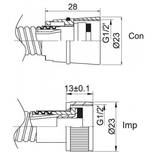 Шланг для душа Rubineta PVC Biflex 1,5 м хром/черный (600039P)