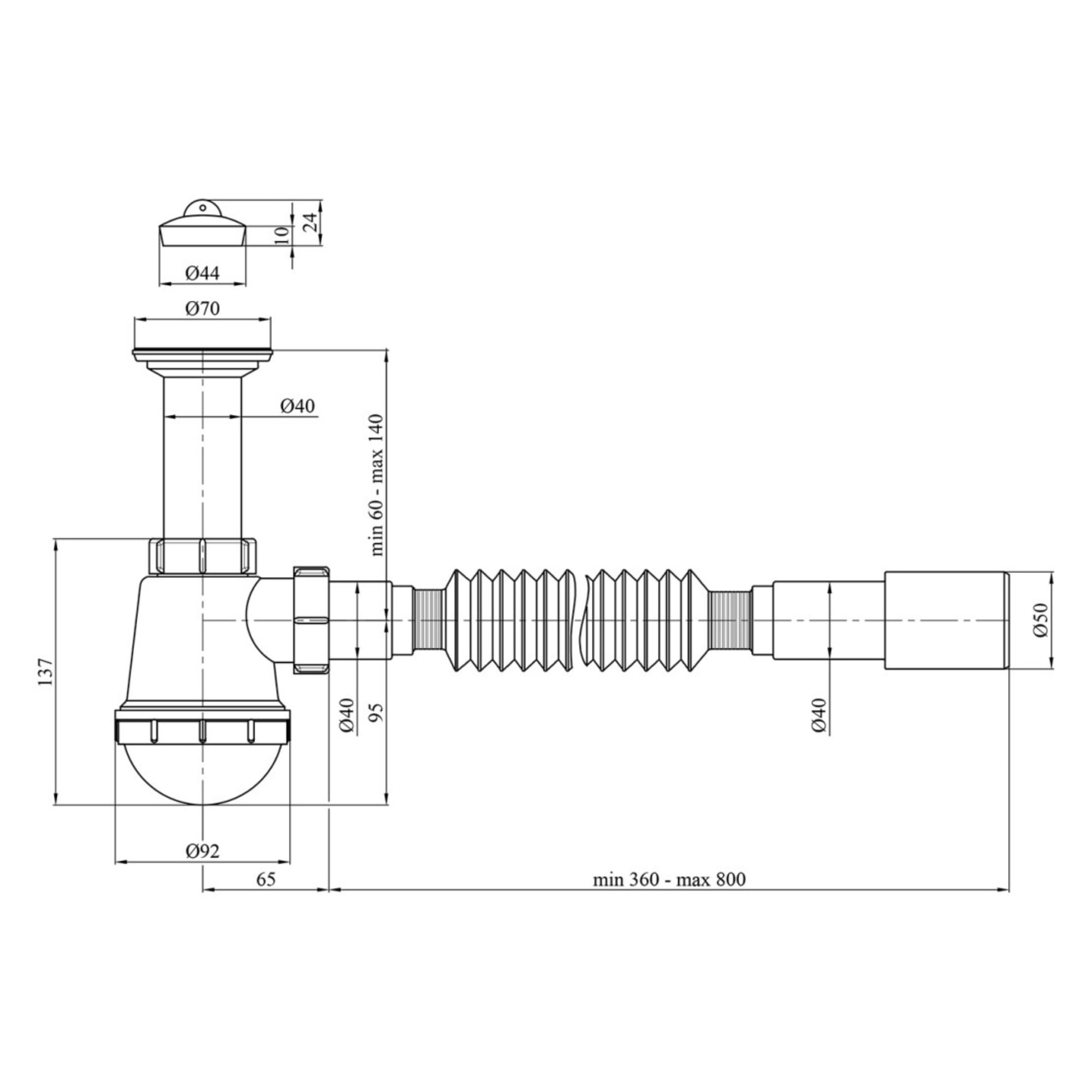 | Тип сифона | Гофрированный, Колбовый (бутылочный) |