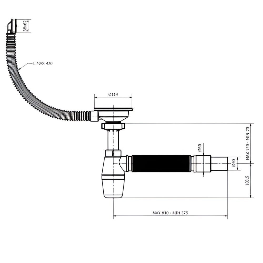 | Длина гибкой трубы | 375-830 мм |