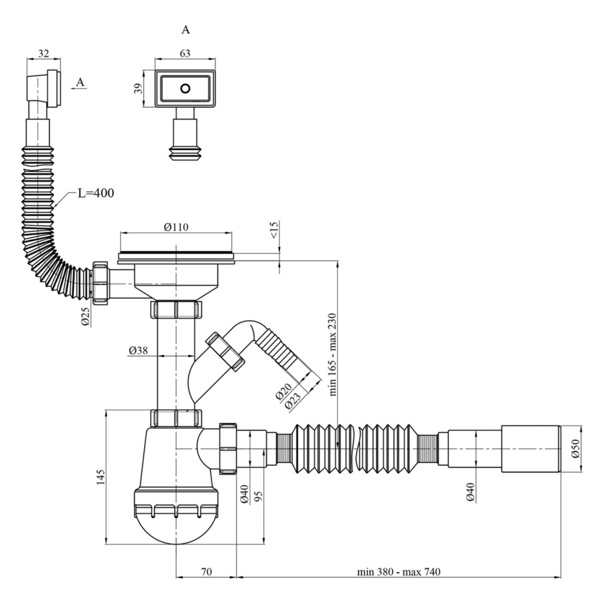 | Тип сифона | Гофрированный, Колбовый (бутылочный) |