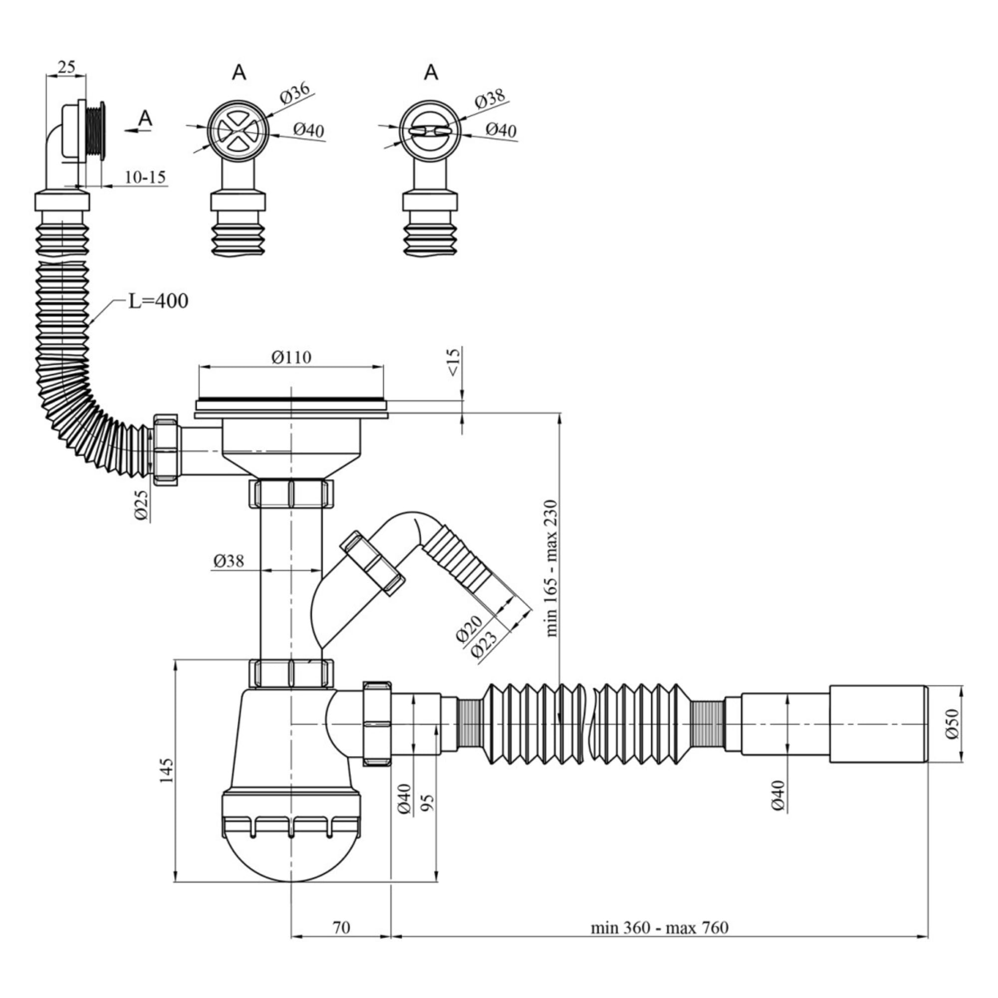 | Тип сифона | Гофрированный, Колбовый (бутылочный) |