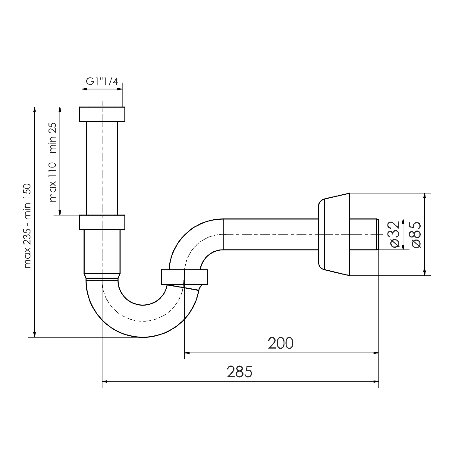 | Тип сифона | Трубный (прямоточный) |