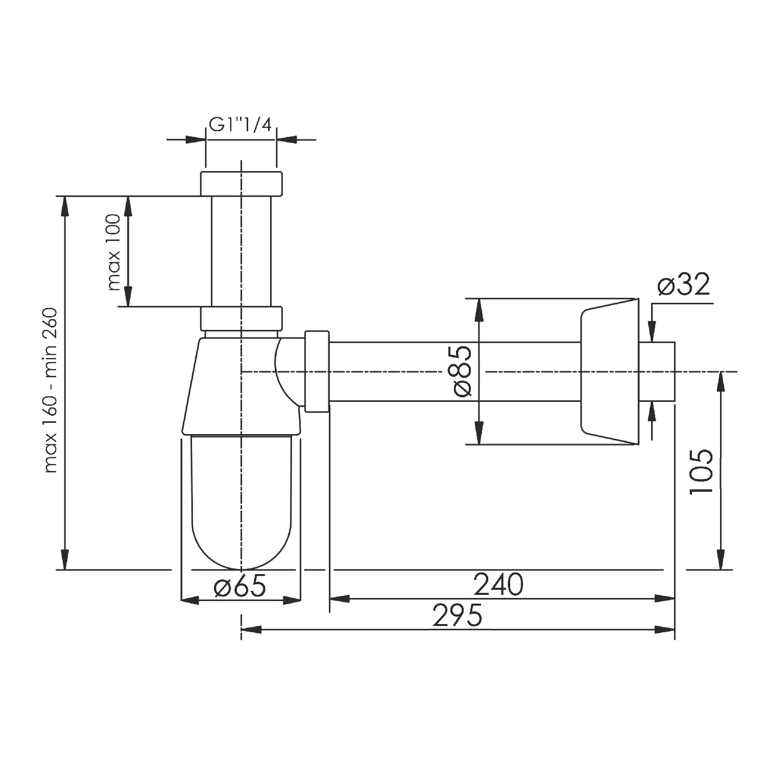 | Тип сифона | Колбовый (бутылочный) |
