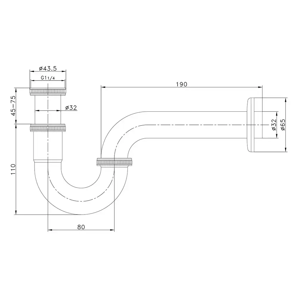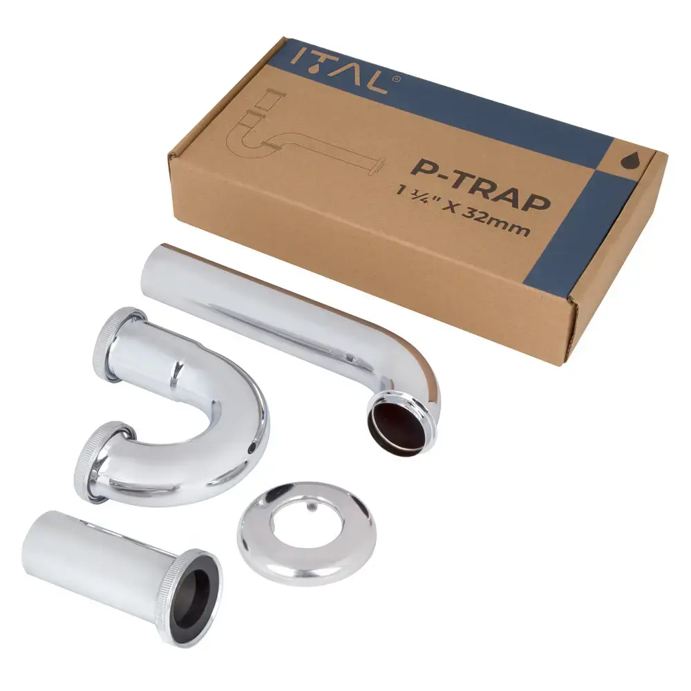 Сифон для раковины ITAL HF6030 1 1/4″ под донный клапан, латунь, хром