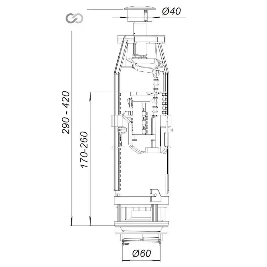 Сливной механизм для бачка унитаза SoloPlast АС2-01 1/2″ 3/6л с нижним подключением