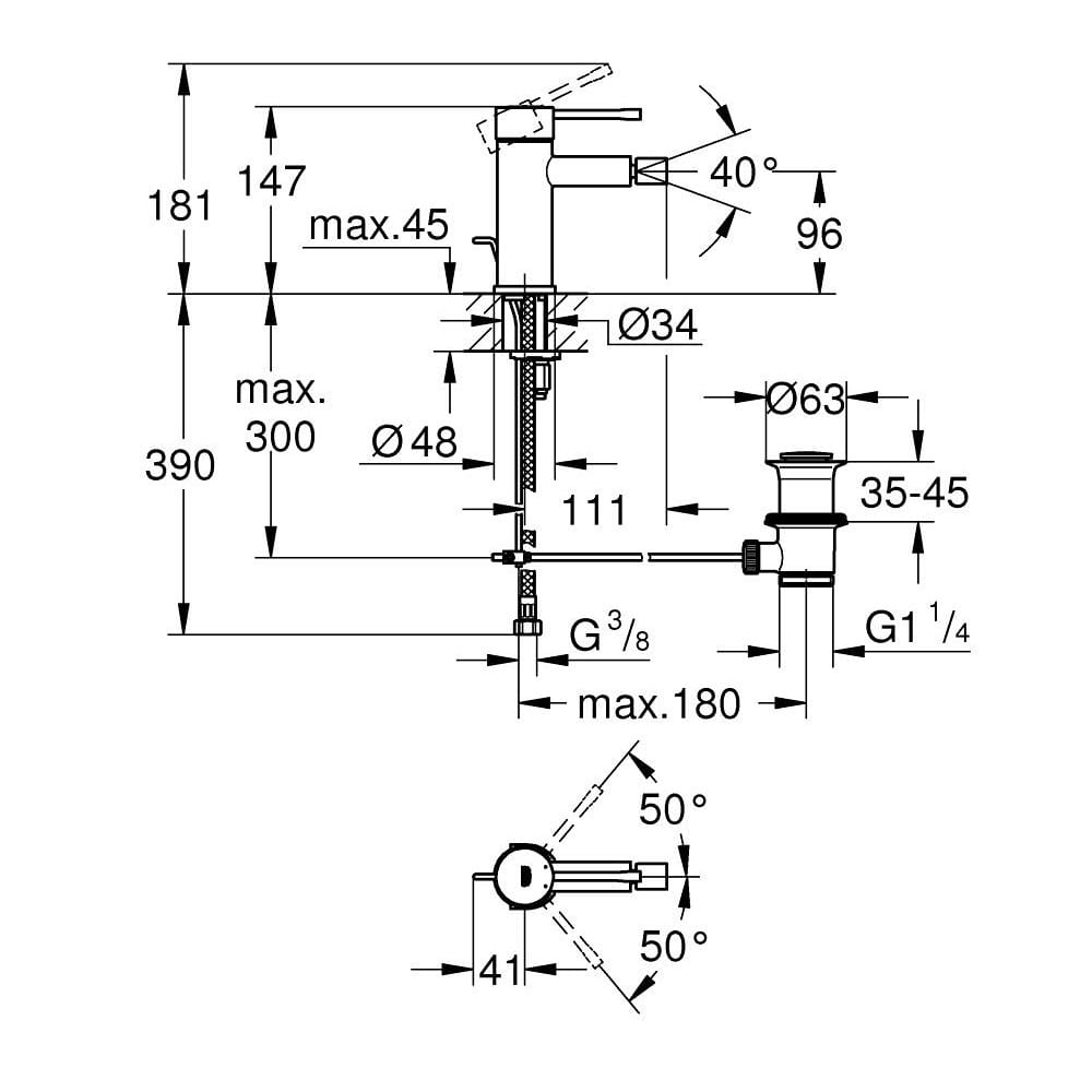 Смеситель для биде Grohe Essence однорычажный, хром (24178001)