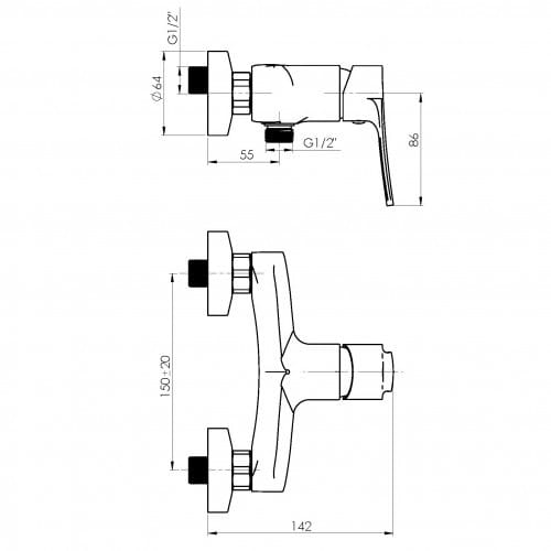 Смеситель для душа Rubineta Nica 12 К однорычажный, хром (NI20K08)