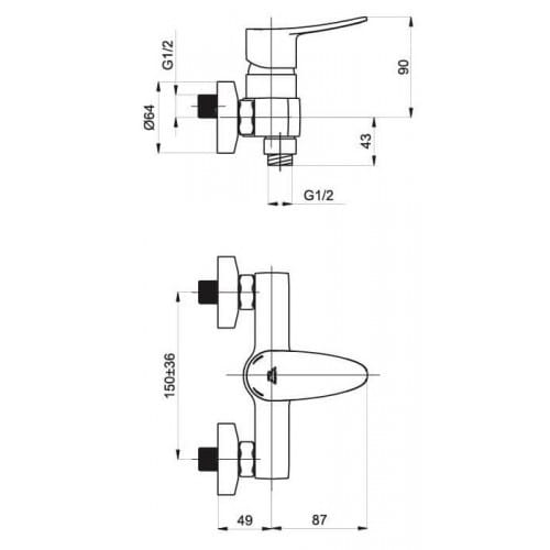 Смеситель для душа Rubineta Static 12 K однорычажный, хром (A20A08N)