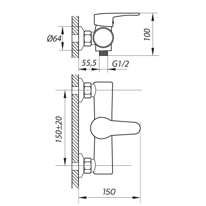 | Вид монтажа смесителя | Настенный |
