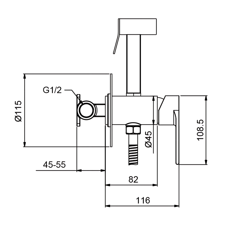 Смеситель для гигиенического душа Koer KI-22015-02 однорычажный, нержавеющая сталь (KR5544)