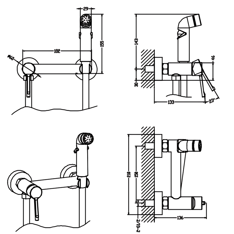 | Вид монтажа смесителя | Настенный |