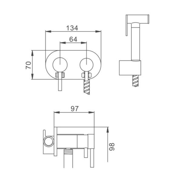 Комплектация | Смеситель, Гигиенический душ, Крепление |