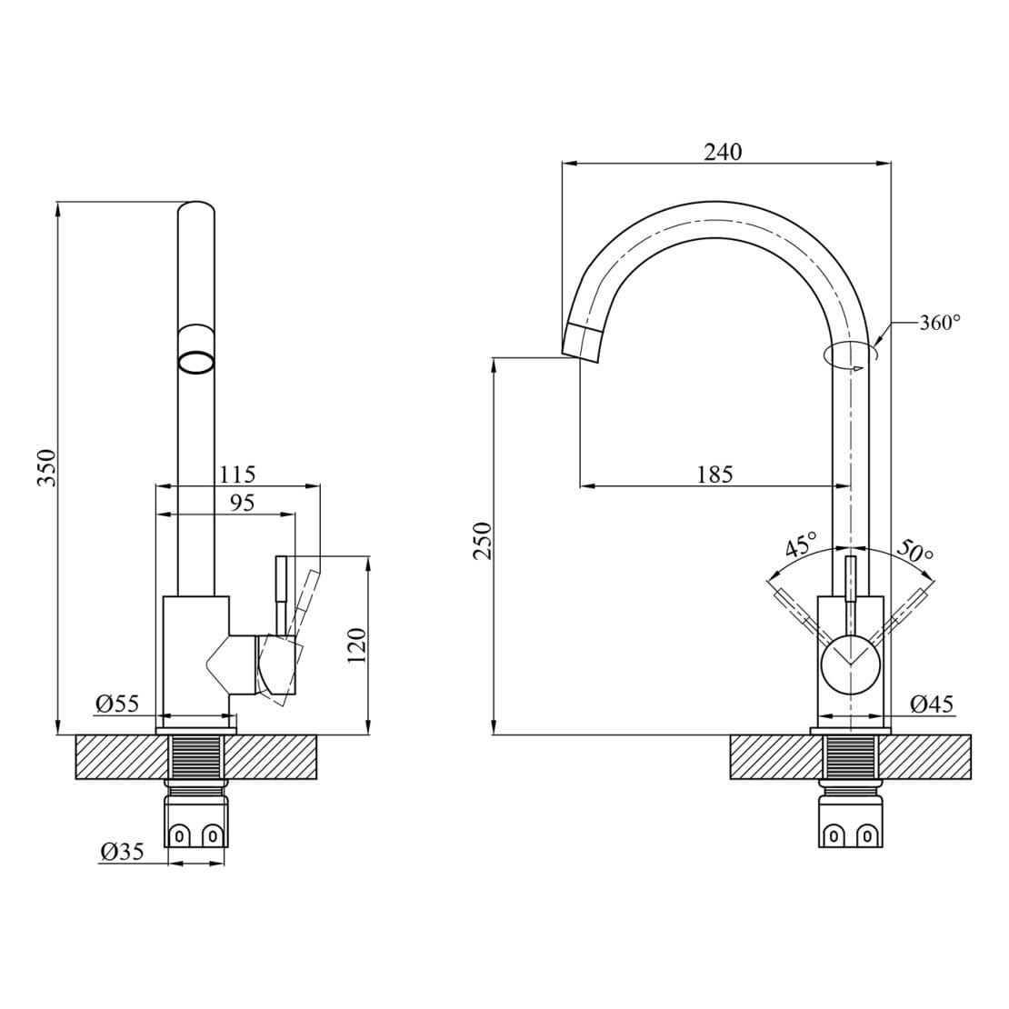 | Высота смесителя, мм | 350 |