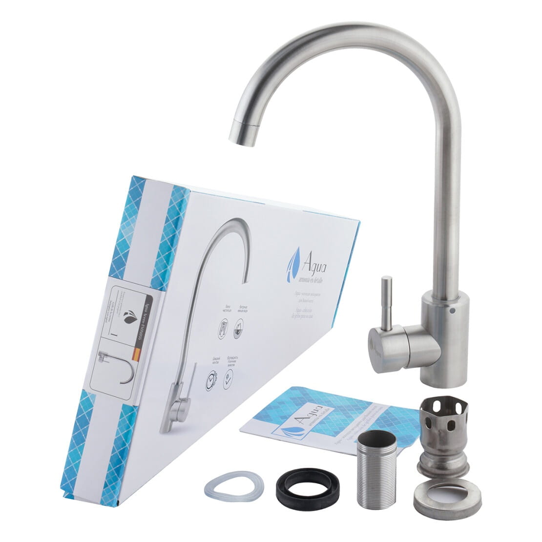 Смеситель для кухни Agua Acero – INOX035 однорычажный, сталь брашированная (CV023285)