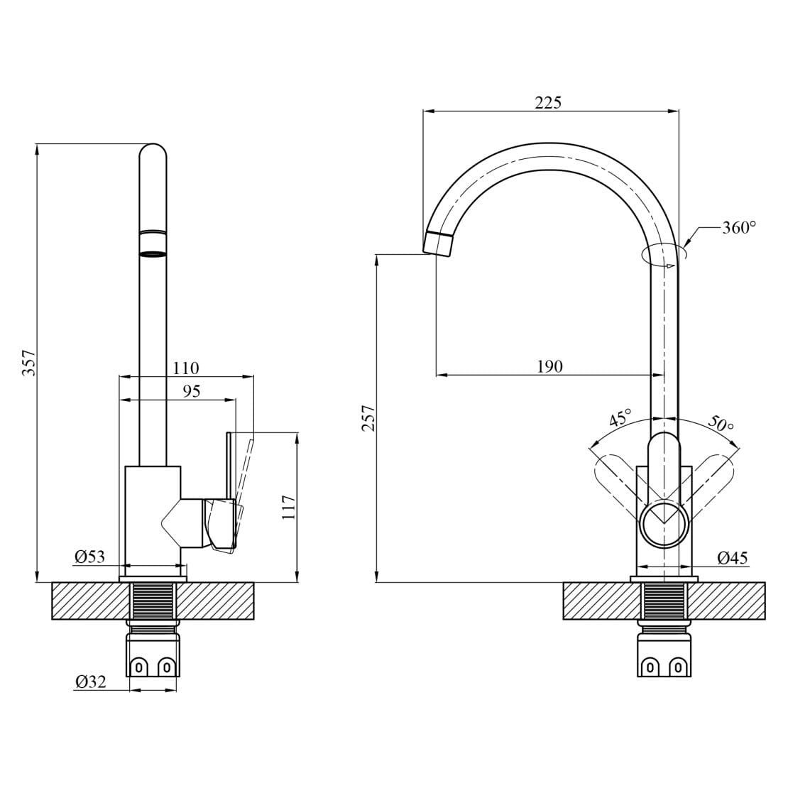 | Высота смесителя, мм | 357 |