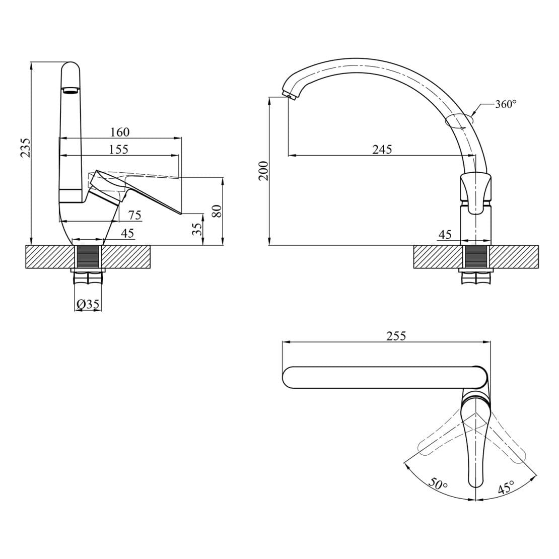 | Высота смесителя, мм | 235 |