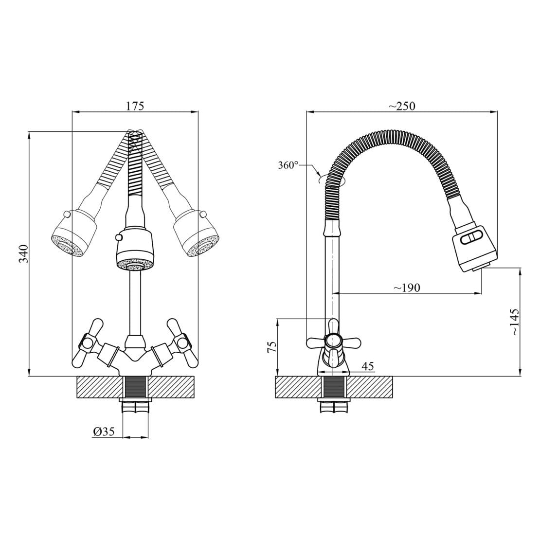 | Высота смесителя, мм | 340 |