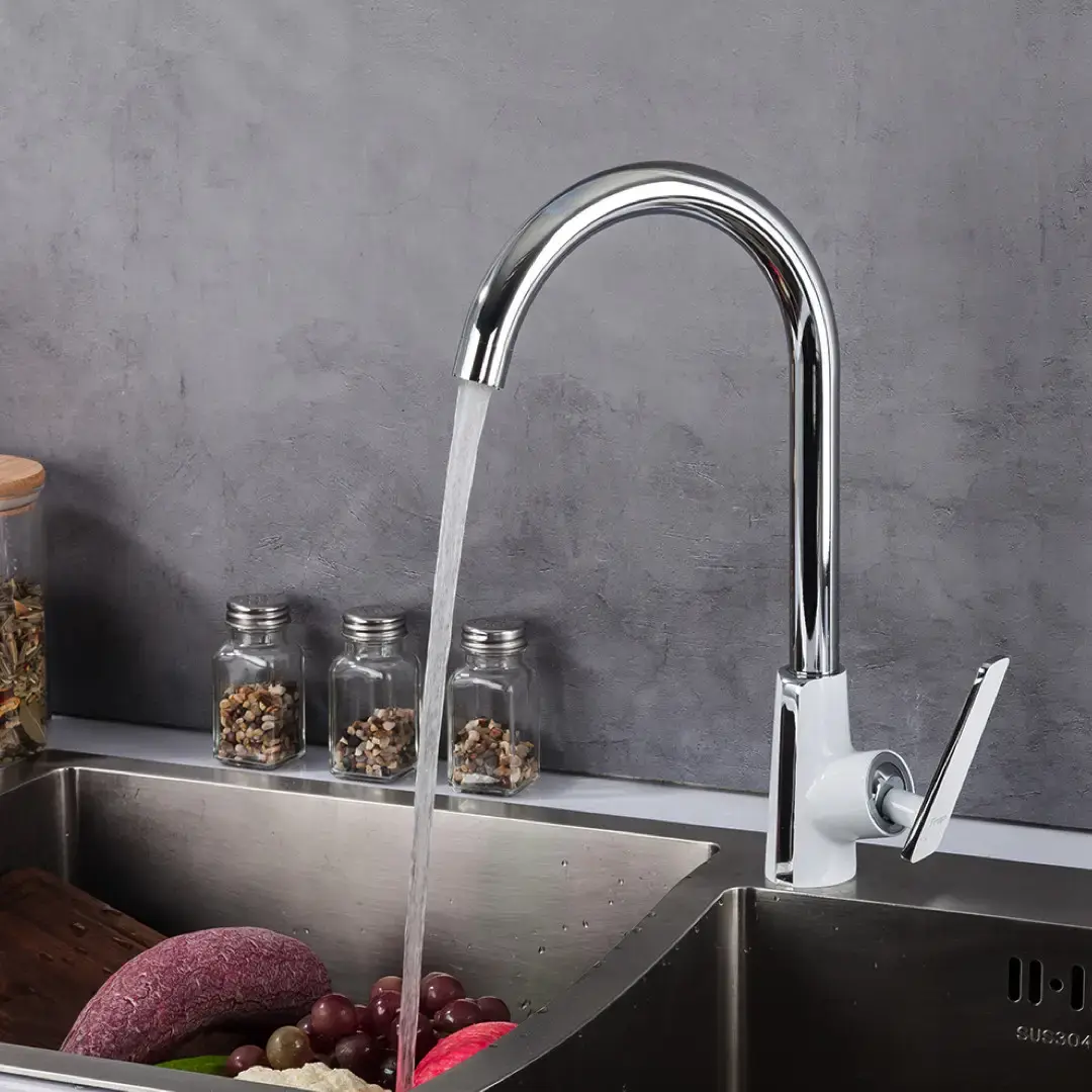 Смеситель для кухни Frap F4058 однорычажный, белый/хром