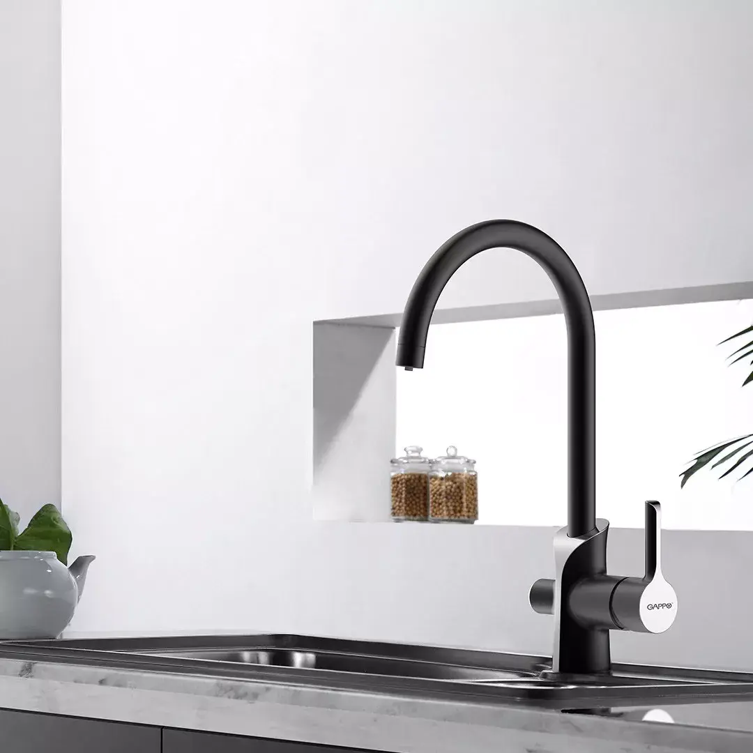 Смеситель для кухни Gappo G4303-6 с подключением фильтра, черный