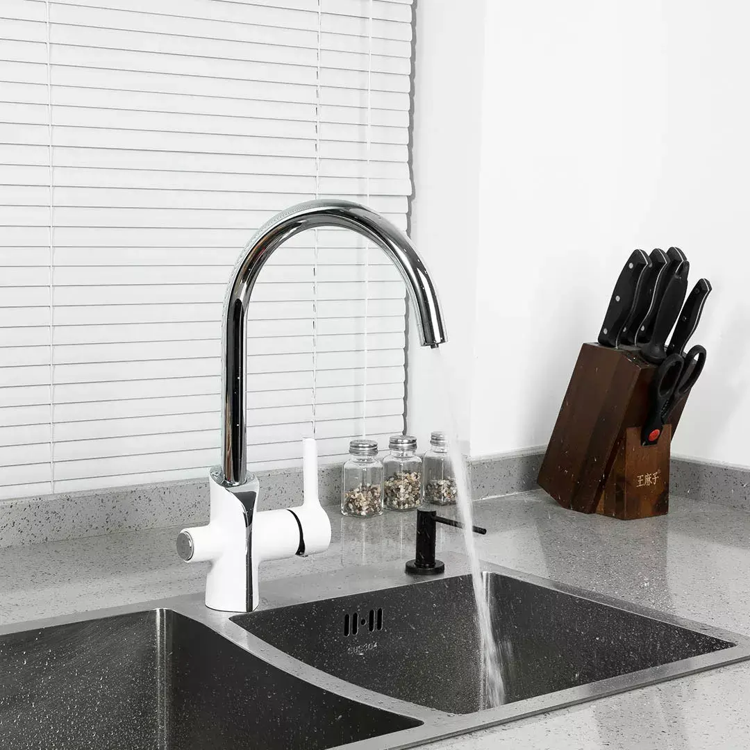 Смеситель для кухни Gappo G4303-8 с подключением фильтра, белый/хром