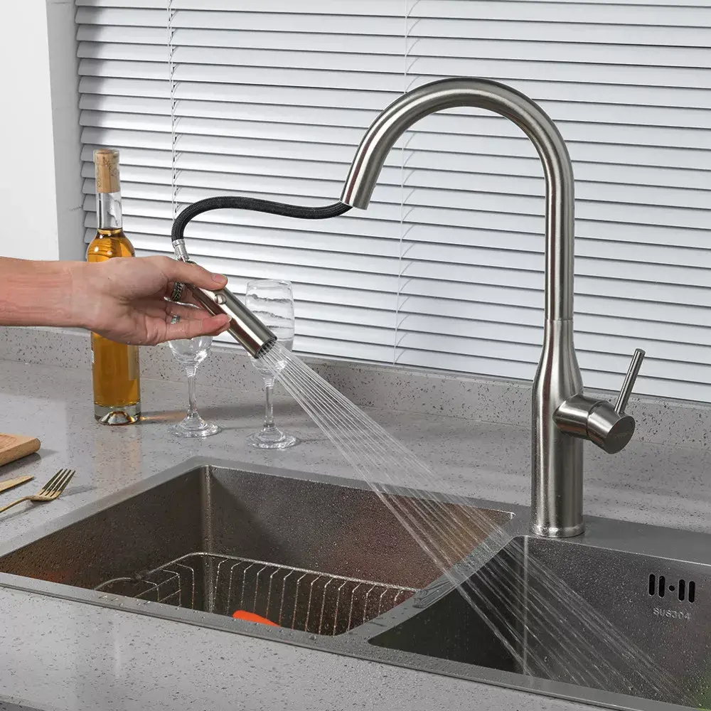 Смеситель для кухни Gappo G4398-45 с выдвижным изливом, сатин