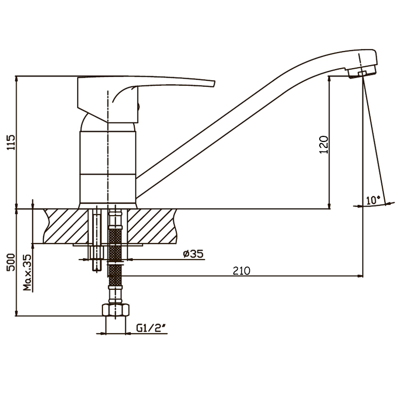| Высота излива, мм | 120 |