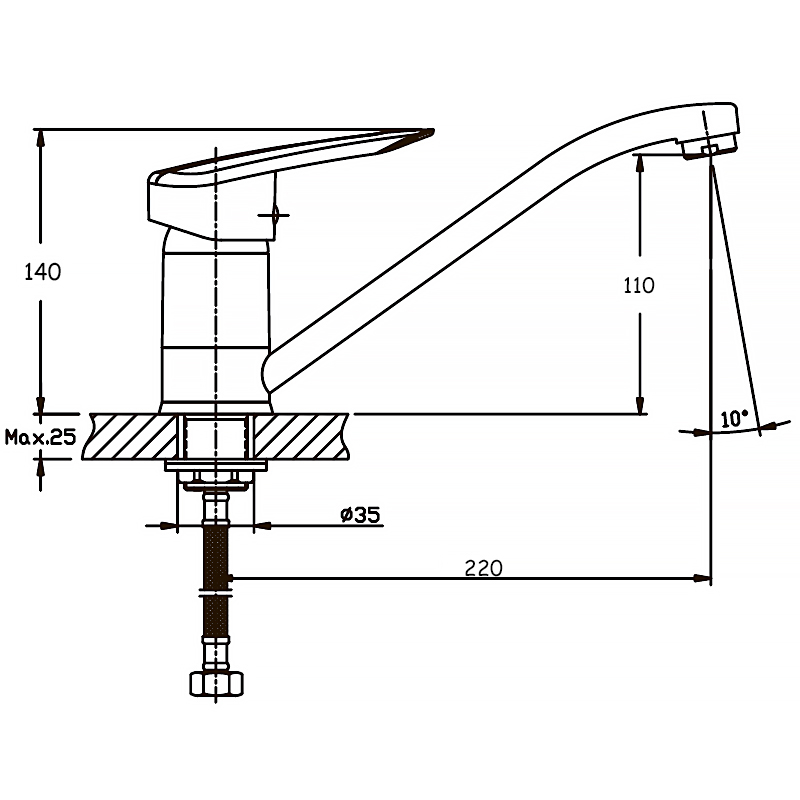 | Длина излива, мм | 220 |
