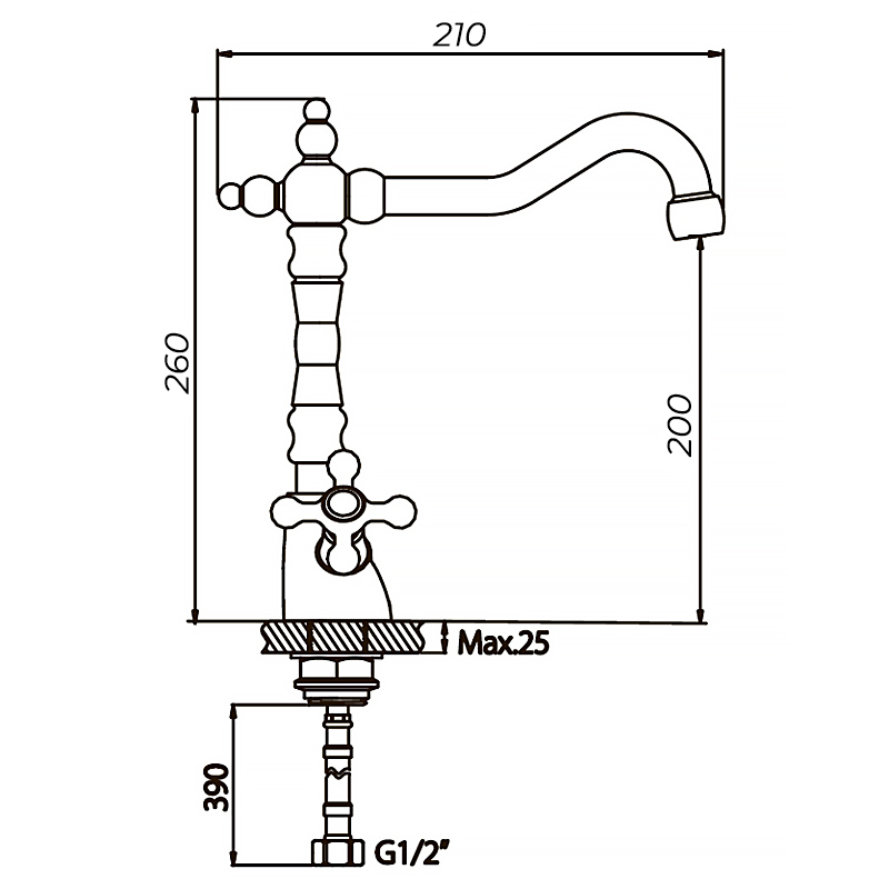 | Высота излива, мм | 200 |