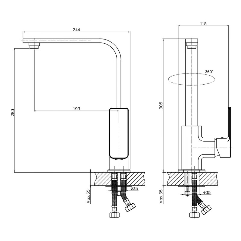 | Комплектация | Смеситель, Аэратор Neoperl, Гибкая подводка из нержавеющей стали, Крепёжная гайка |