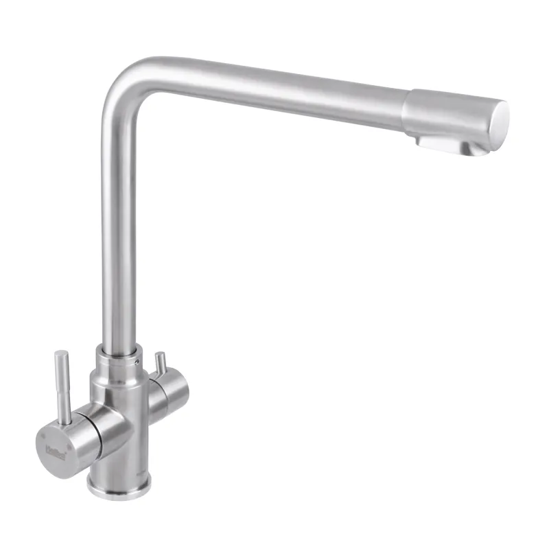 Смеситель для кухни Haiba SUS 021 двухрычажный, нержавеющая сталь (HB3908)
