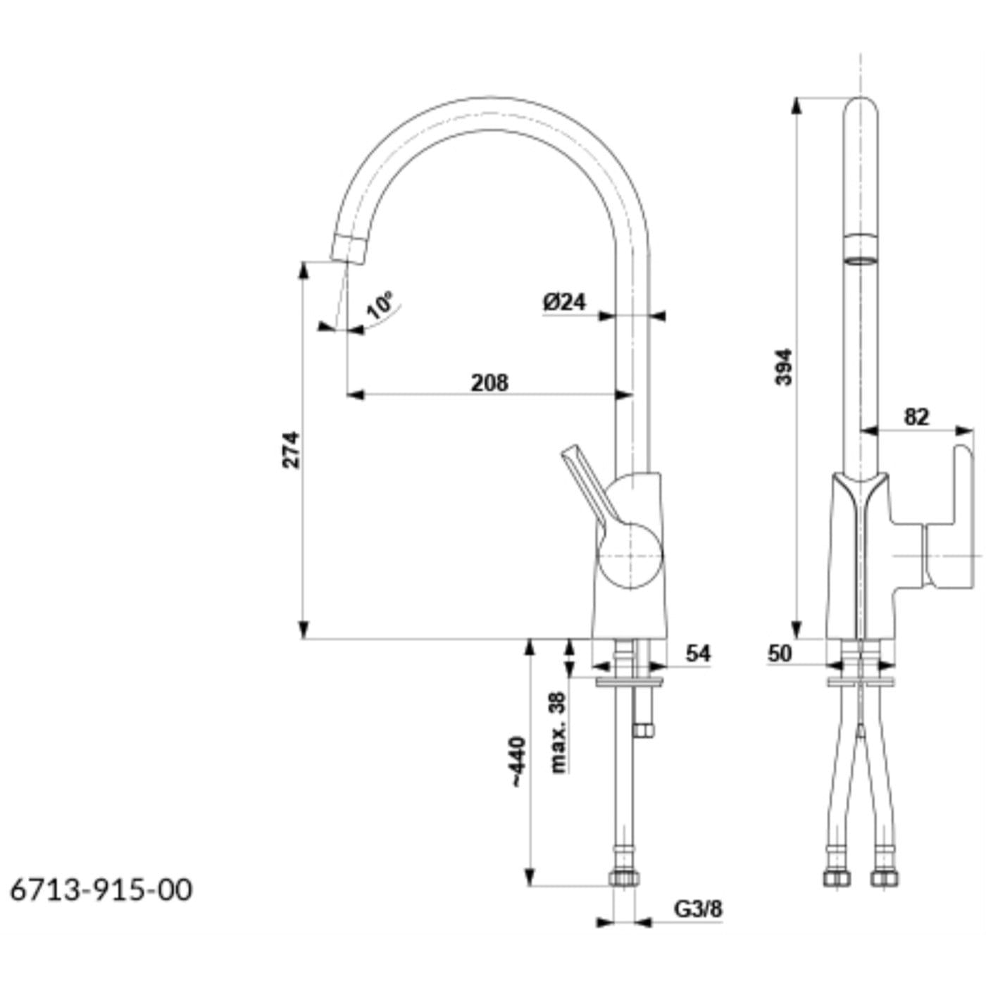 | Высота излива, мм | 274 |