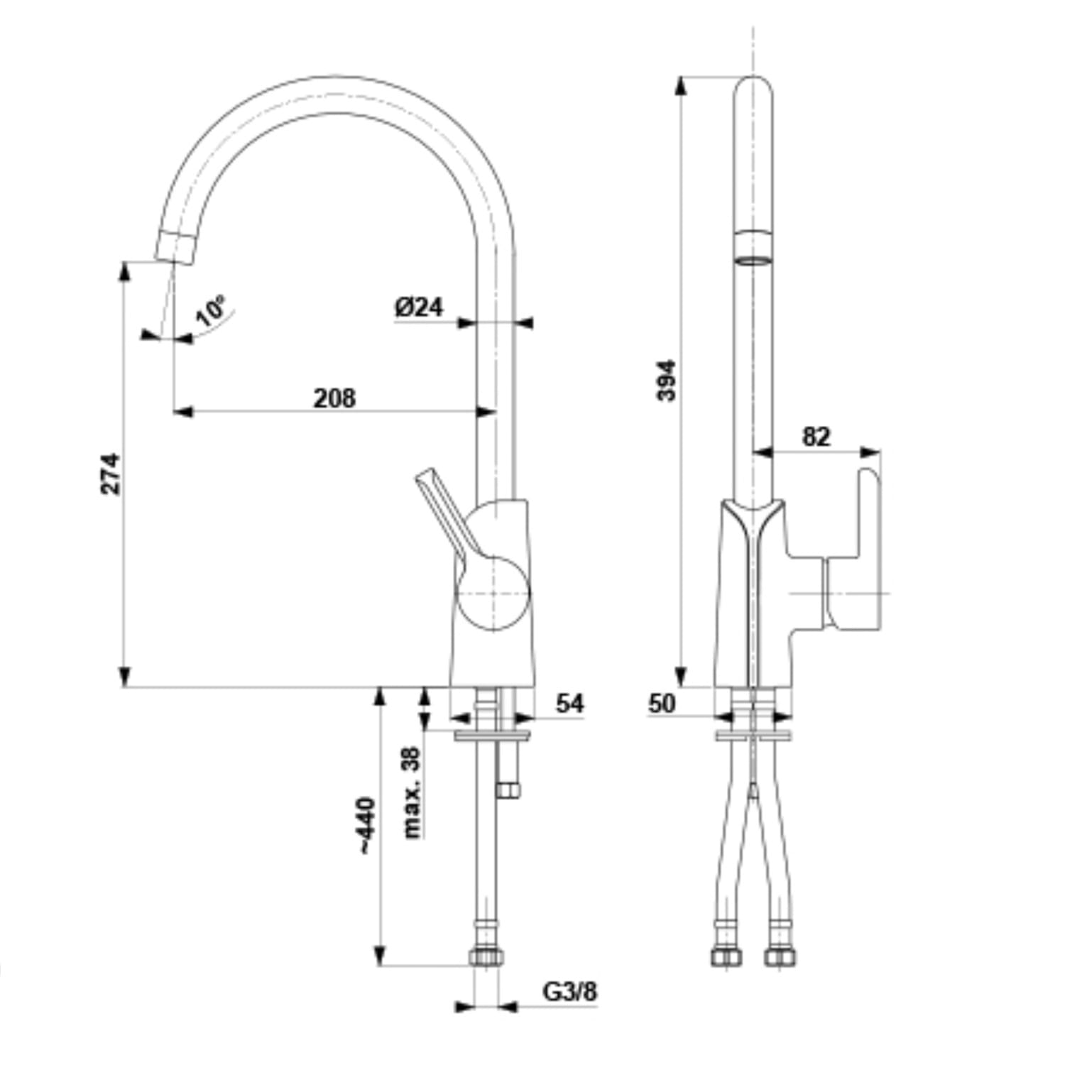 Высота излива, мм | 274 |