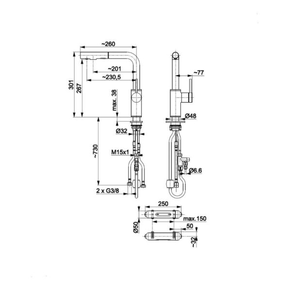 Тип излива | Выдвижной, Г-образный, Литой, Высокий |