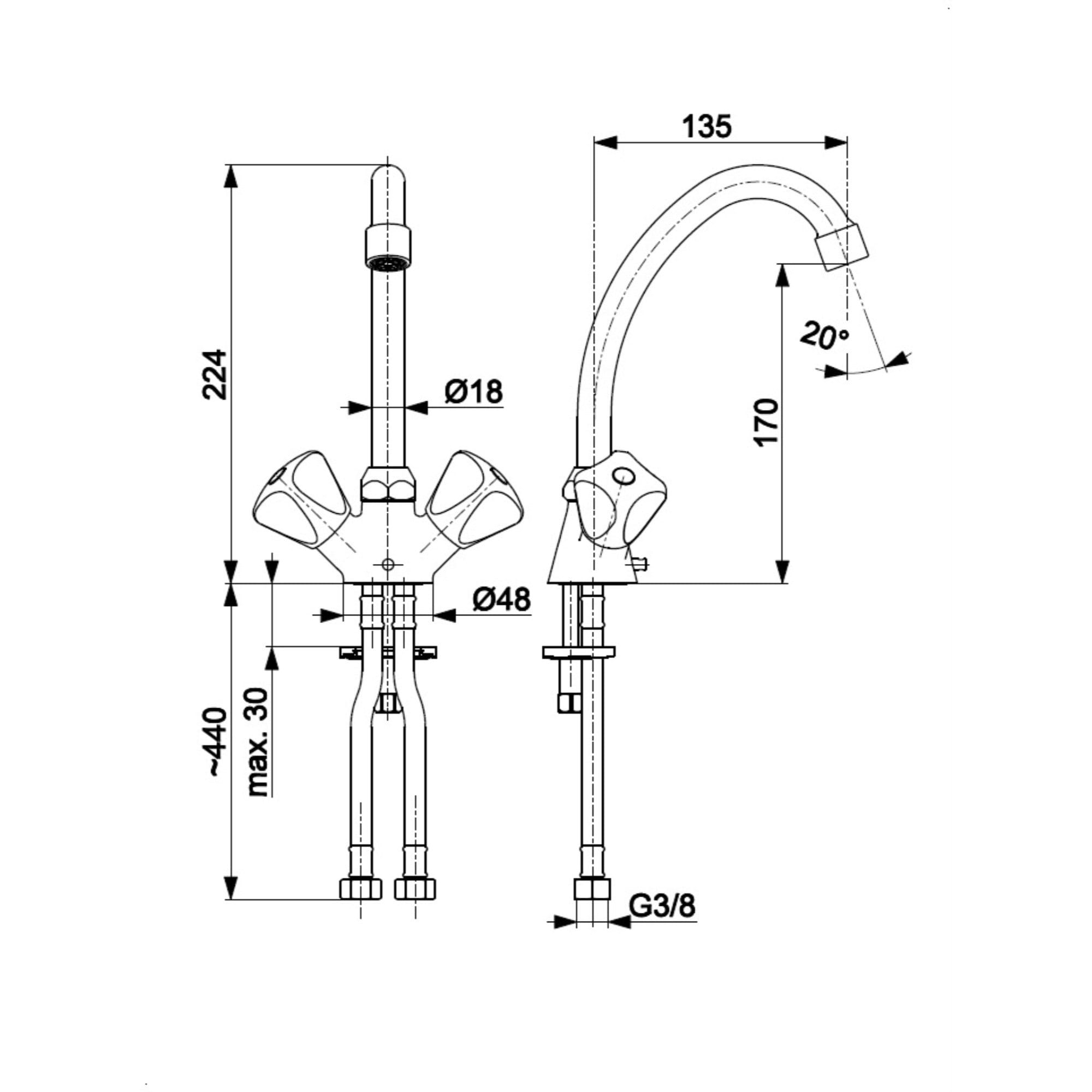 Смеситель для кухни KFA Armatura Standard двухвентильный, хром (302-315-00)