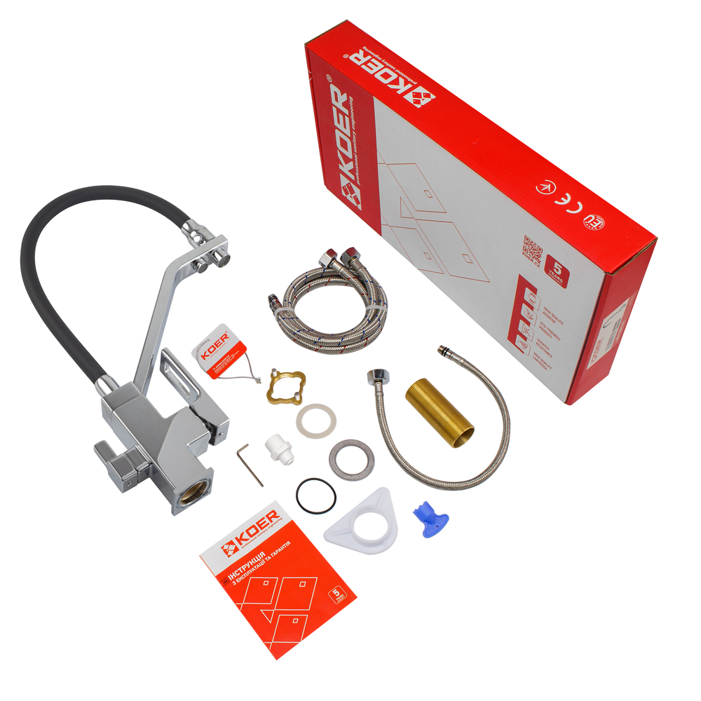 Смеситель для кухни Koer KB-72009-01 двухрычажный, хром (KR5006)