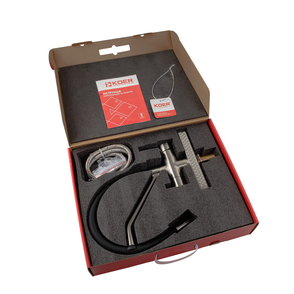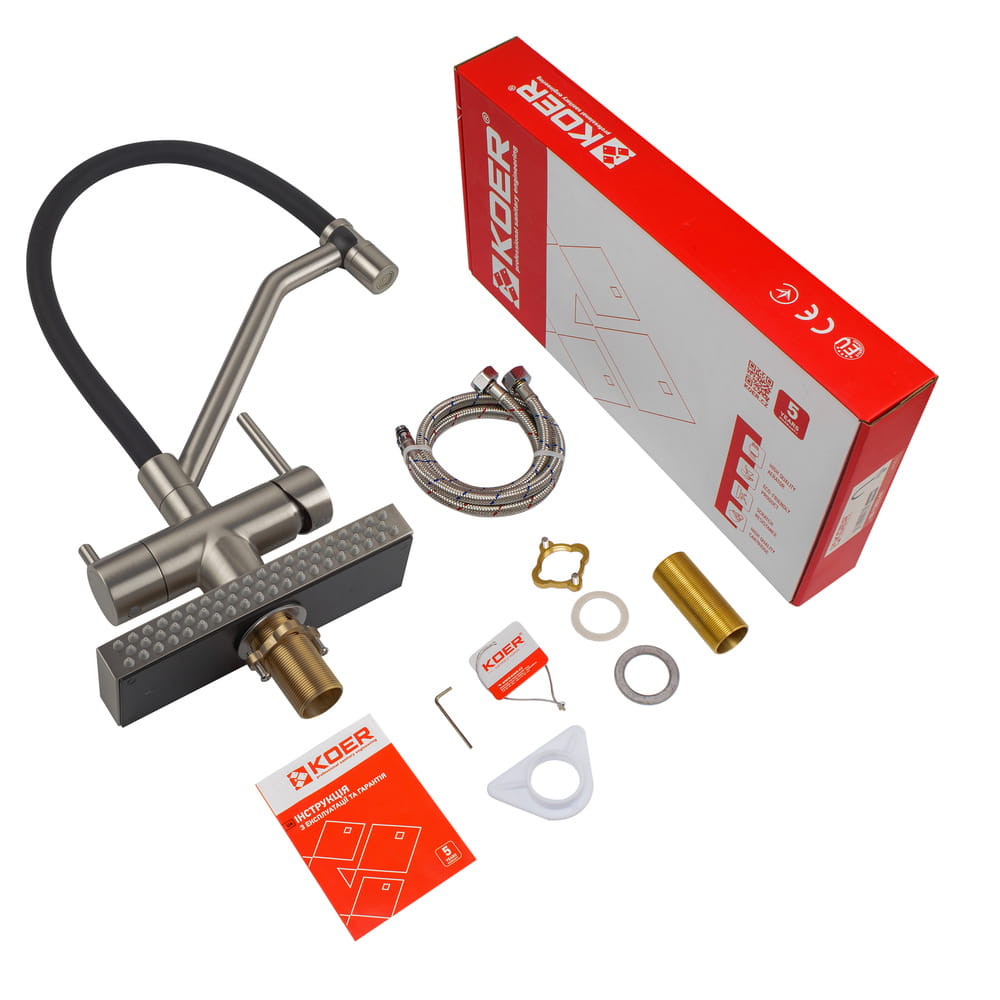 Смеситель для кухни Koer KB-74027-02 однорычажный, нержавеющая сталь (KR5201)