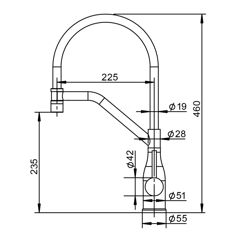 | Высота излива, мм | 225 |