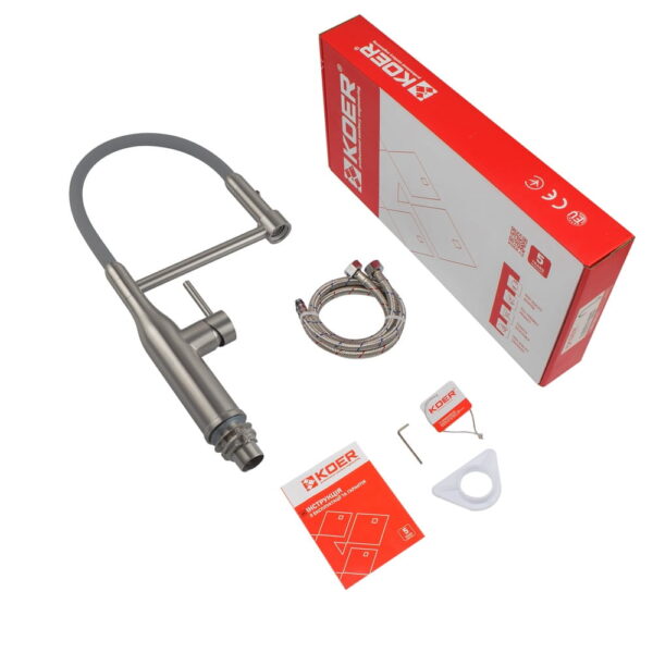 Смеситель для кухни Koer KI-72005-02 однорычажный, сталь (KR3388)
