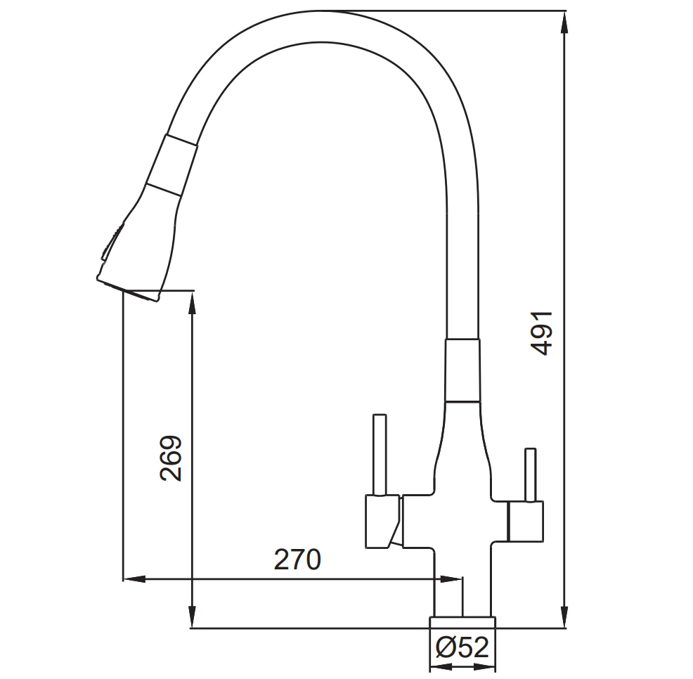 | Высота смесителя, мм | 491 |