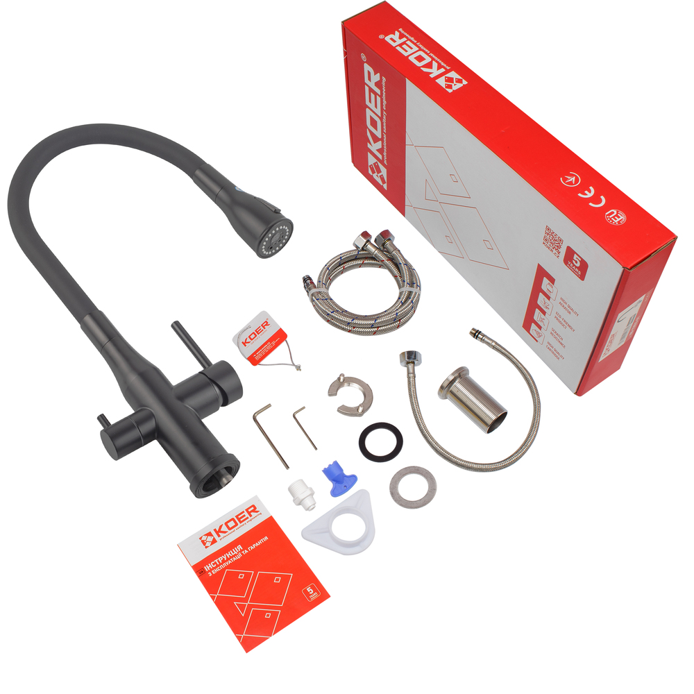 | Комплектация | Гибкая подводка, Аэратор, Крепежная гайка |