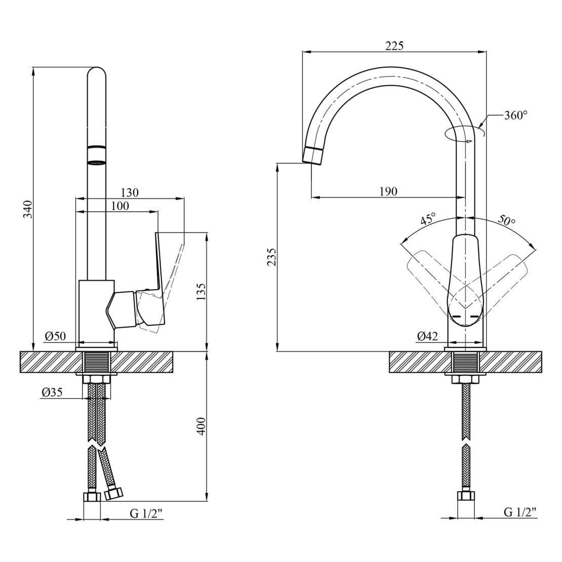 | Высота смесителя, мм | 340 |