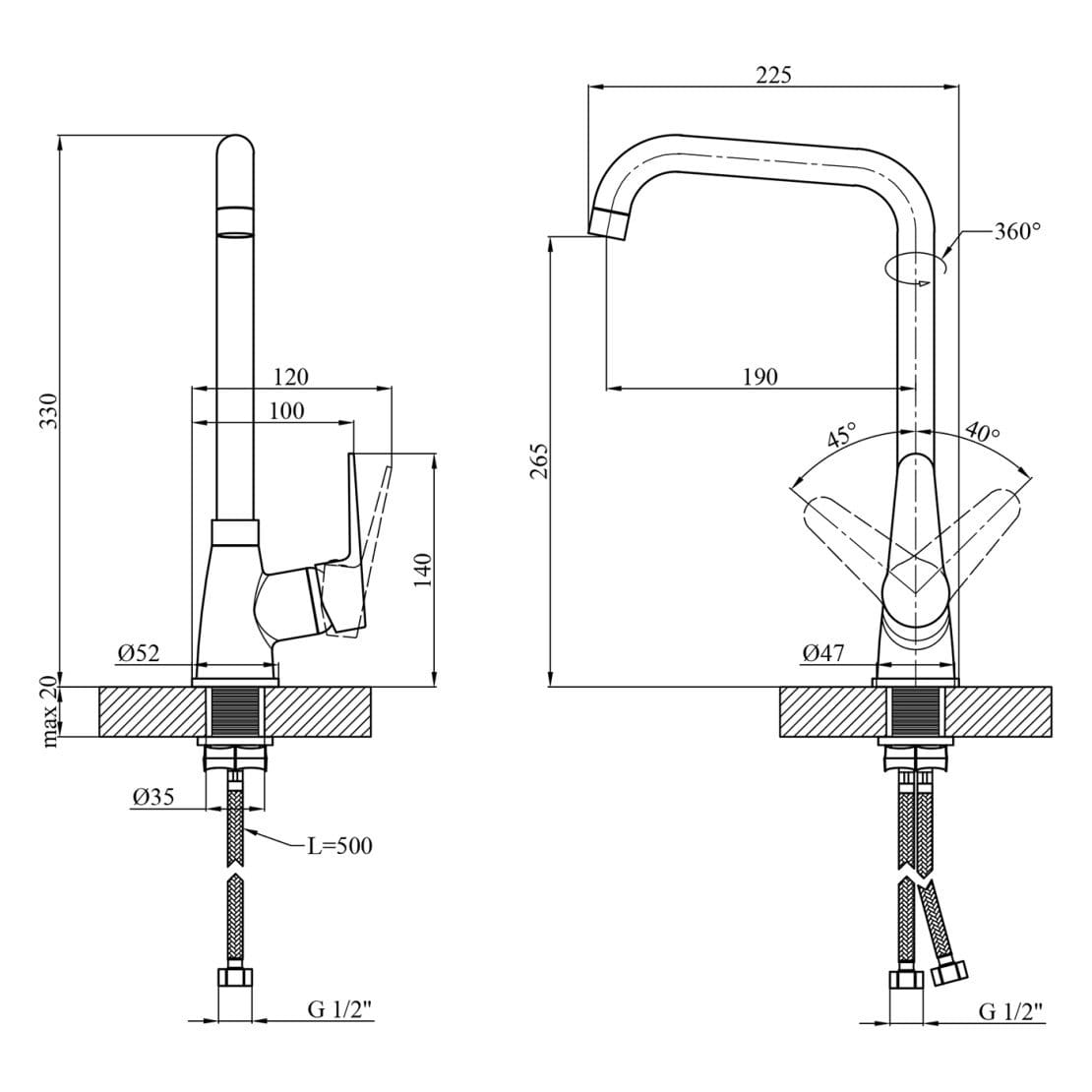 | Высота смесителя, мм | 330 |