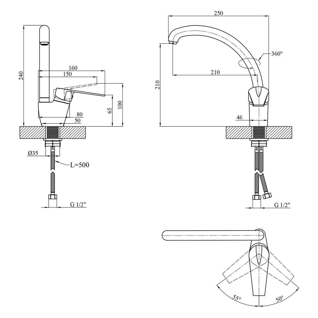 Смеситель для кухни Kroner KRM Odra – C032 однорычажный, хром (CV021151)