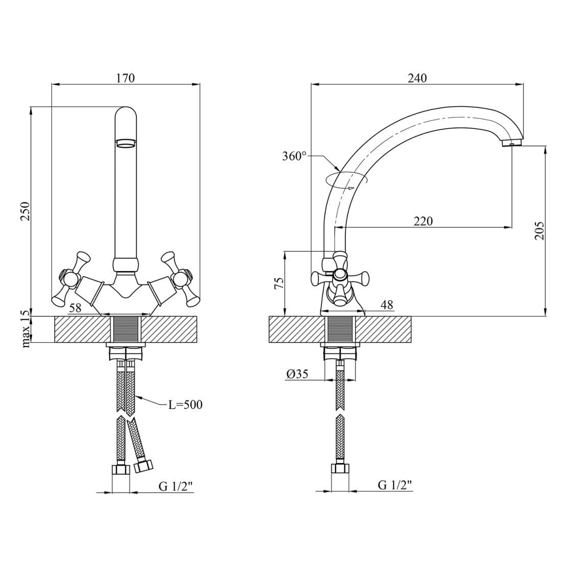 Смеситель для кухни Kroner KRM Rhein – C032 двухвентильный, хром (CV017352)