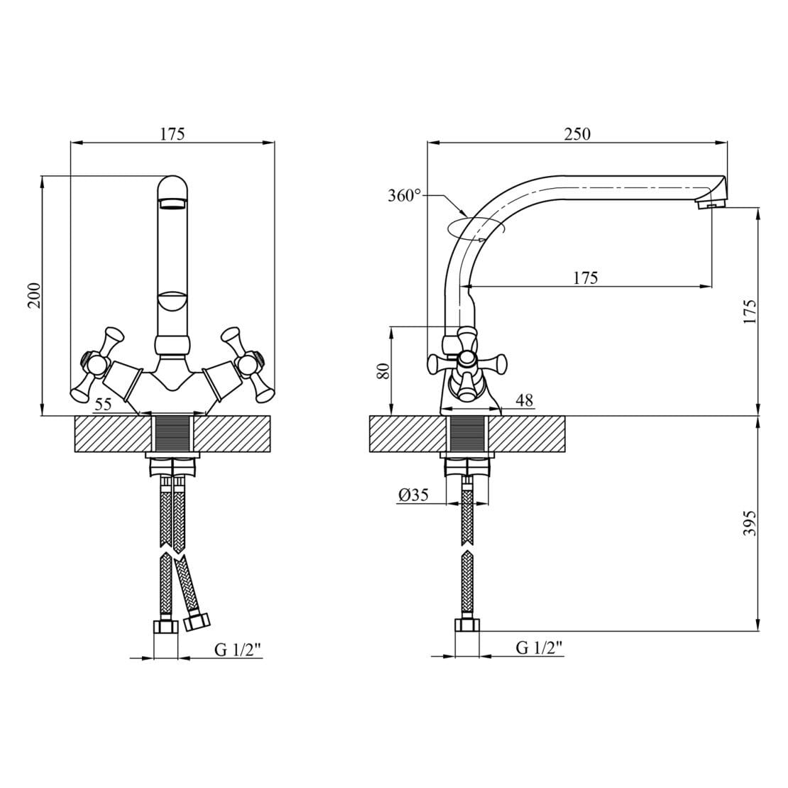 Смеситель для кухни Kroner KRM Rhein – C033 двухвентильный, хром (CV018075)