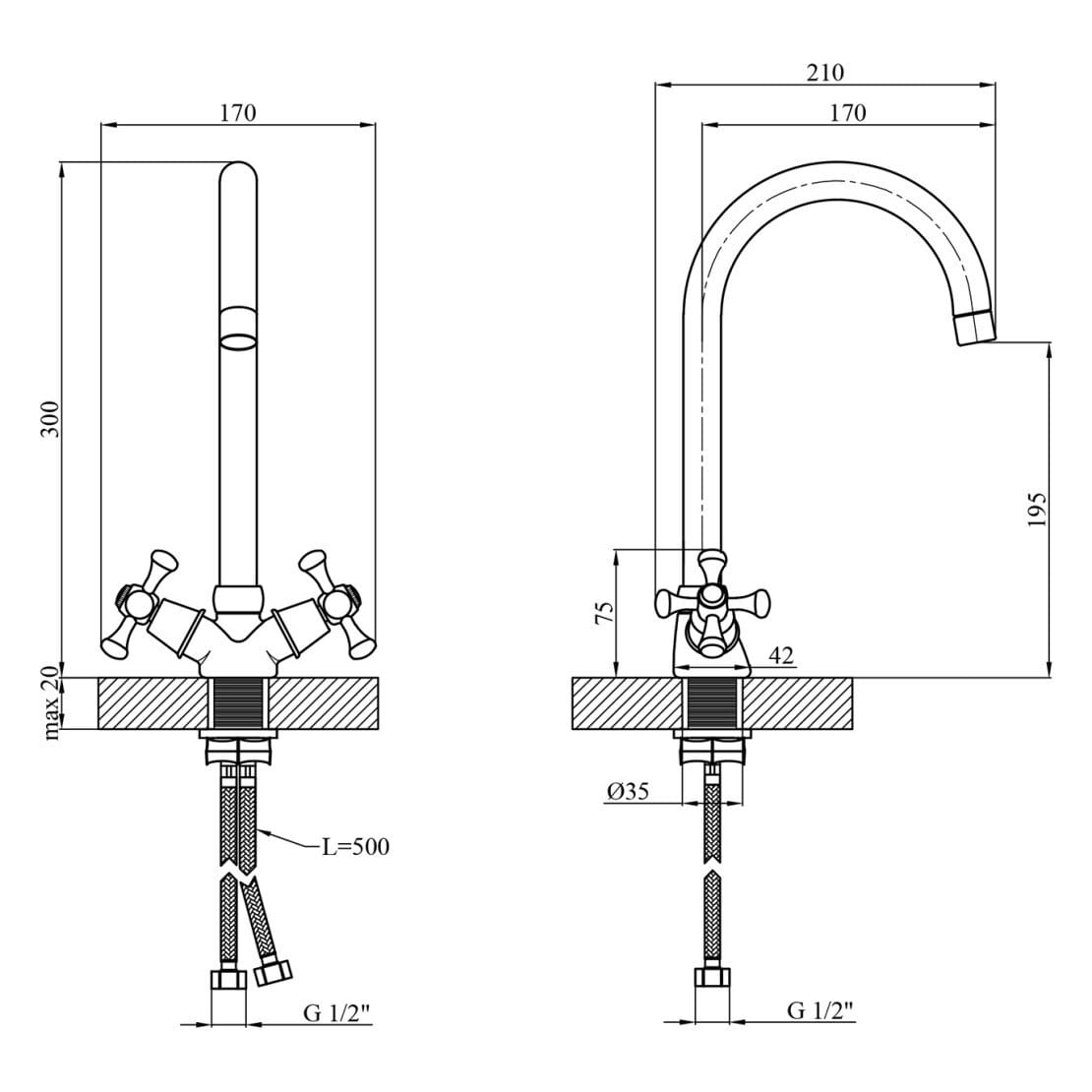 Смеситель для кухни Kroner KRM Rhein – C034 двухвентильный, хром (CV018616)