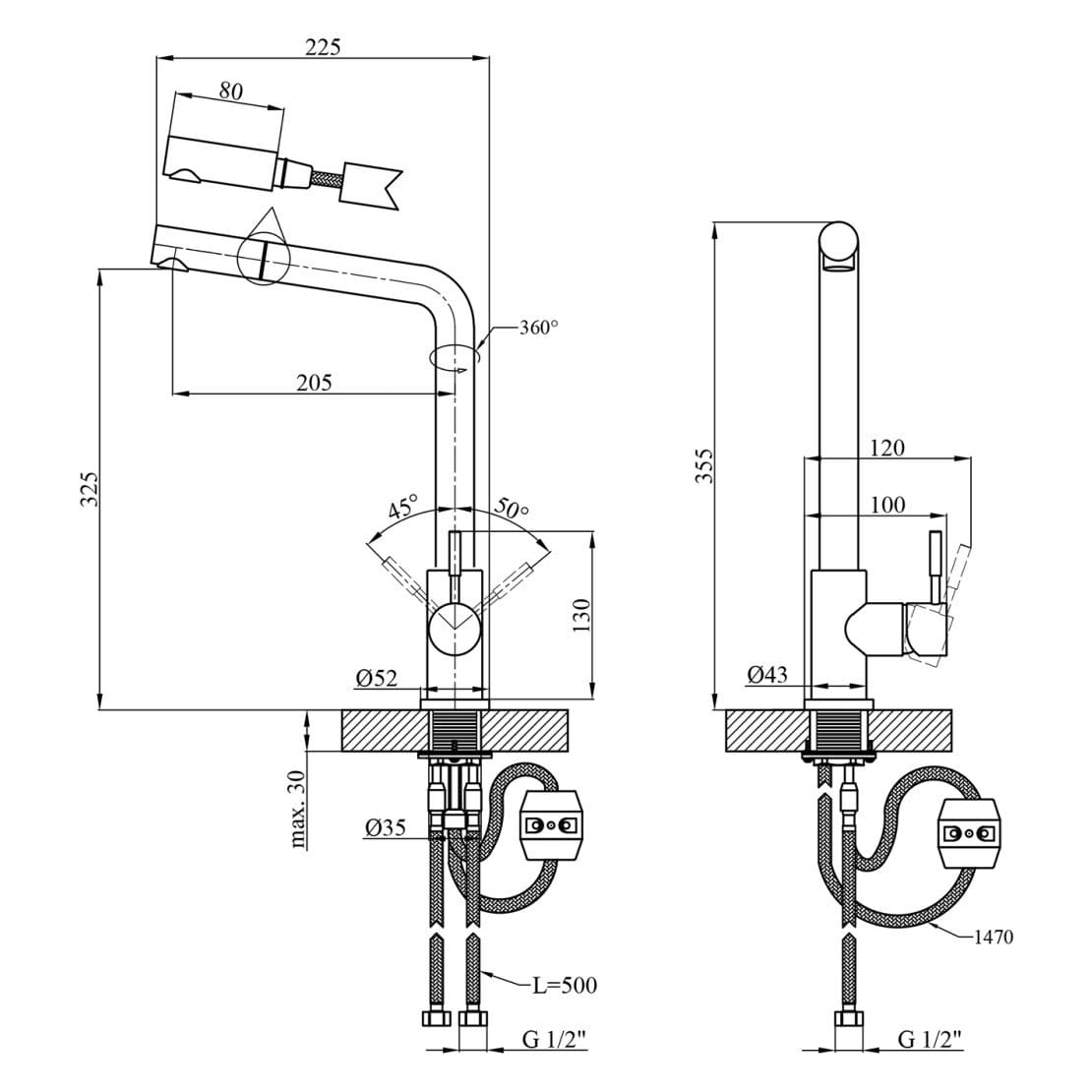 | Высота смесителя, мм | 355 |