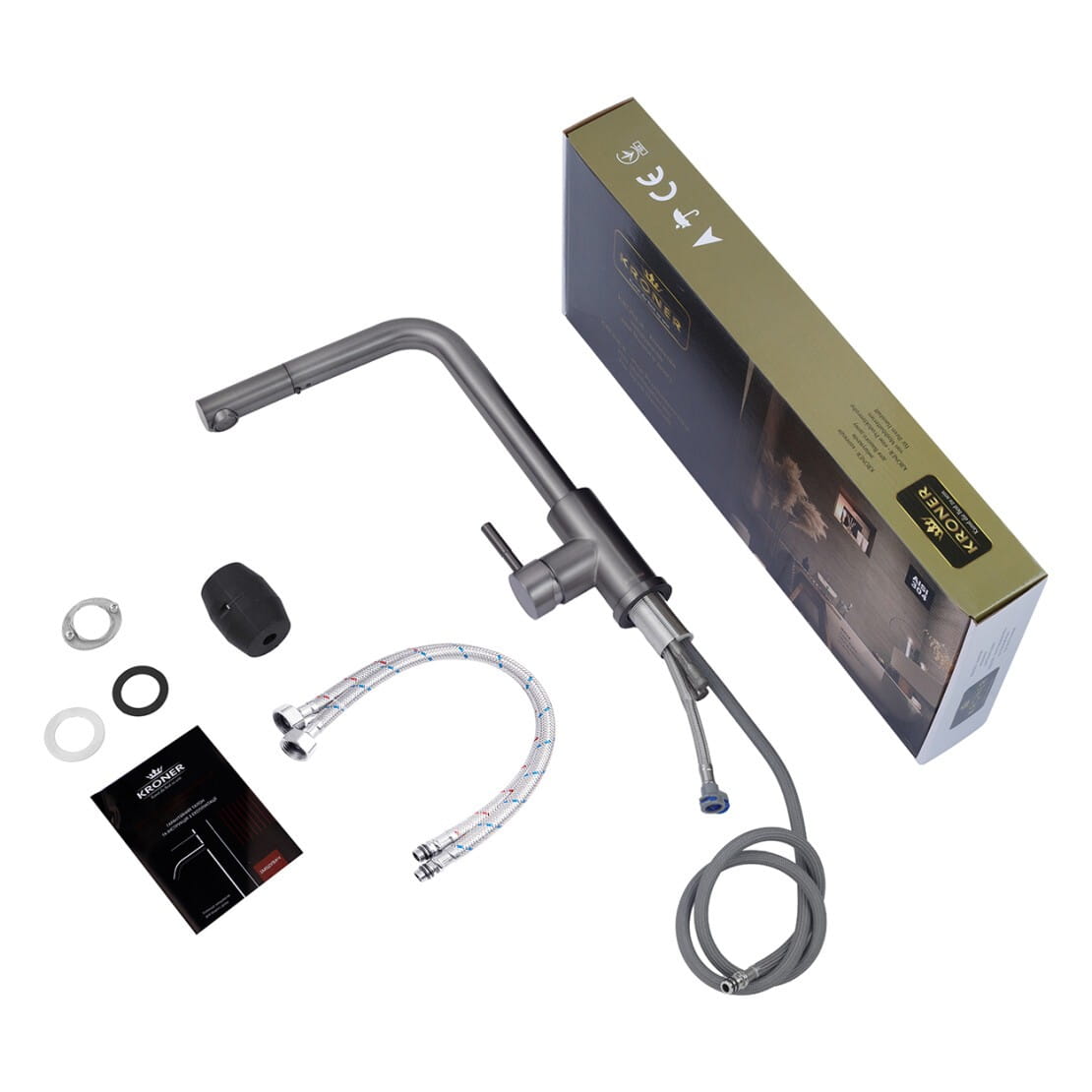 Смеситель для кухни Kroner KRP Edelstahl Klassisch – PVD03917 однорычажный, графит брашированный (CV032285)
