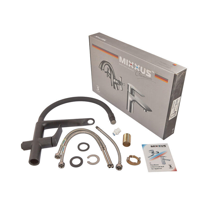 Смеситель для кухни Mixxus Premium Derby 021 (Nut) двухрычажный, черный матовая (MI6606)